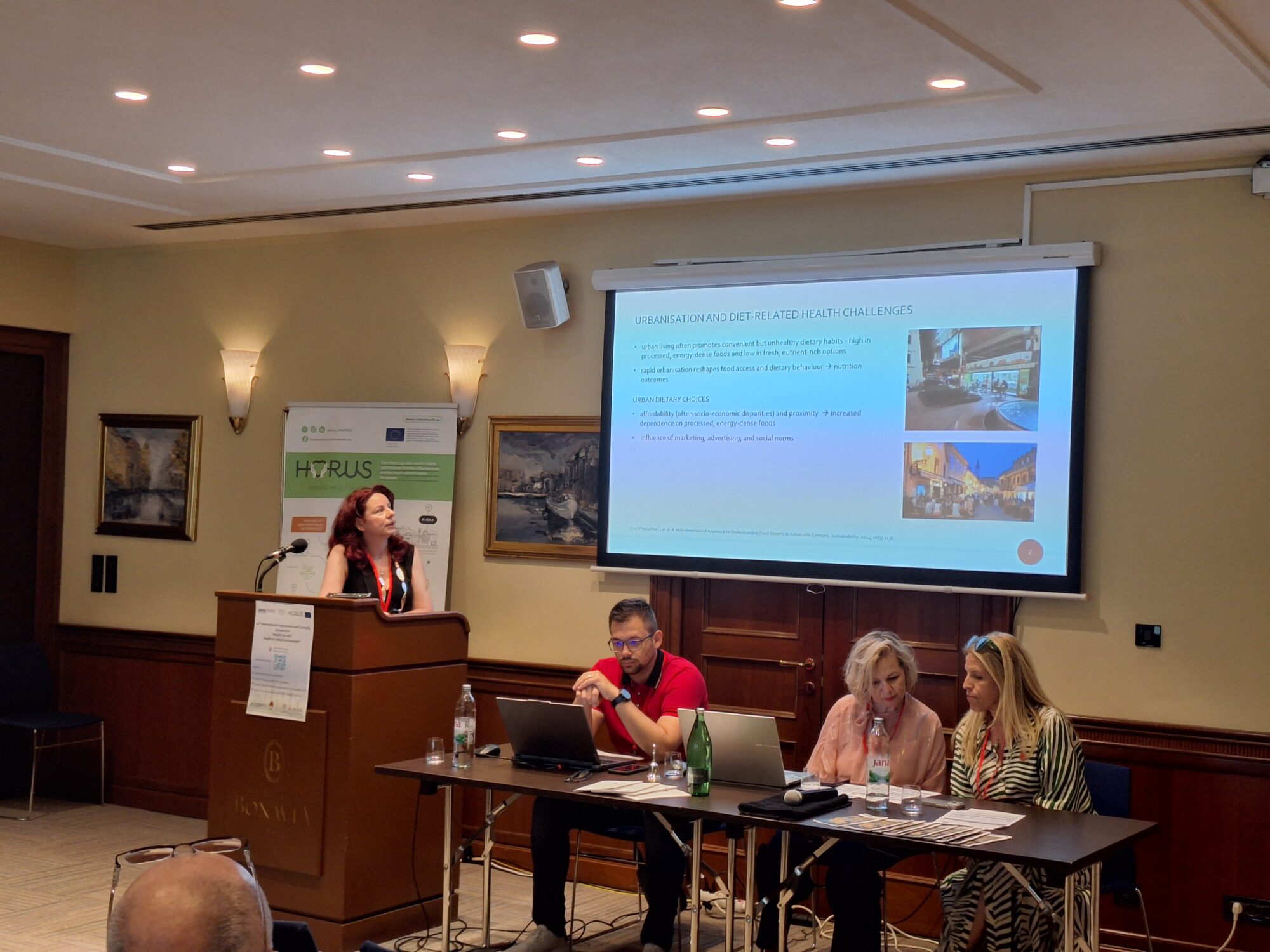 The symposium addressed key topics on health inequalities in urban environments, with a strong emphasis on the preliminary findings from the HORUS project in Rijeka, the project’s pilot city. The event featured scientific presentations, panel discussions, and the official handover of the publication “Health Barometer of the Residents of the City of Rijeka” to the Mayor, Professor Iva Rinčić.